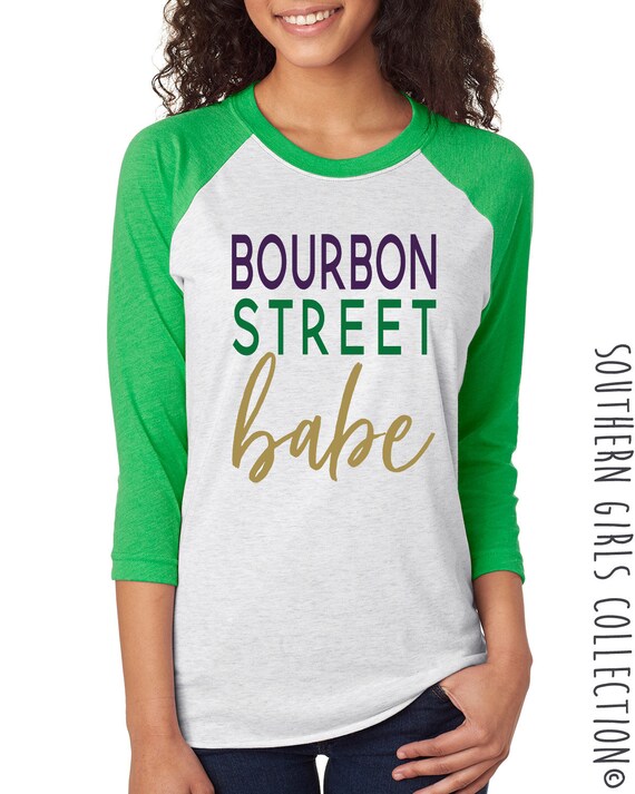 Mardi Gras Raglan Shirt Bourbon Street Babe Tshirt Graphic T Shirt Typograph Baseball Shirt Southern Girls Collection Sweet Tee