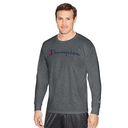 Champion Graphic Tees Grey Mens Life Long Sleeve Tee Ink Script Logo Oxford Grey Scmi Usa