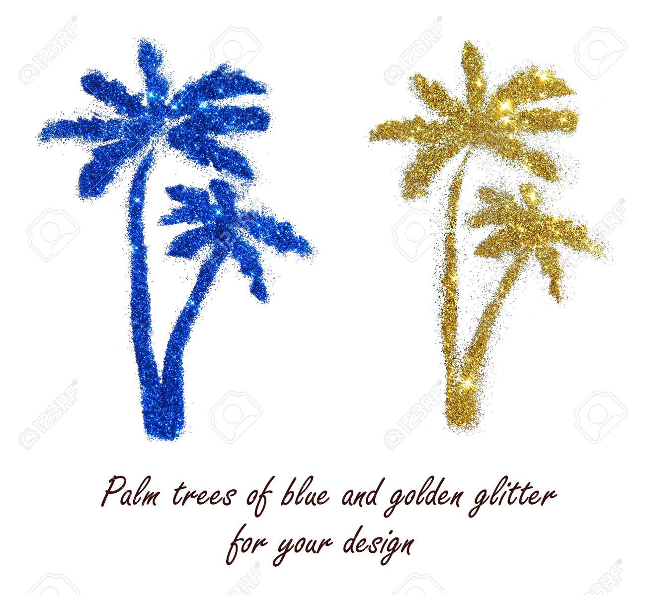 Blue And Golden Palm Trees Of Glitter On White Background Interesting